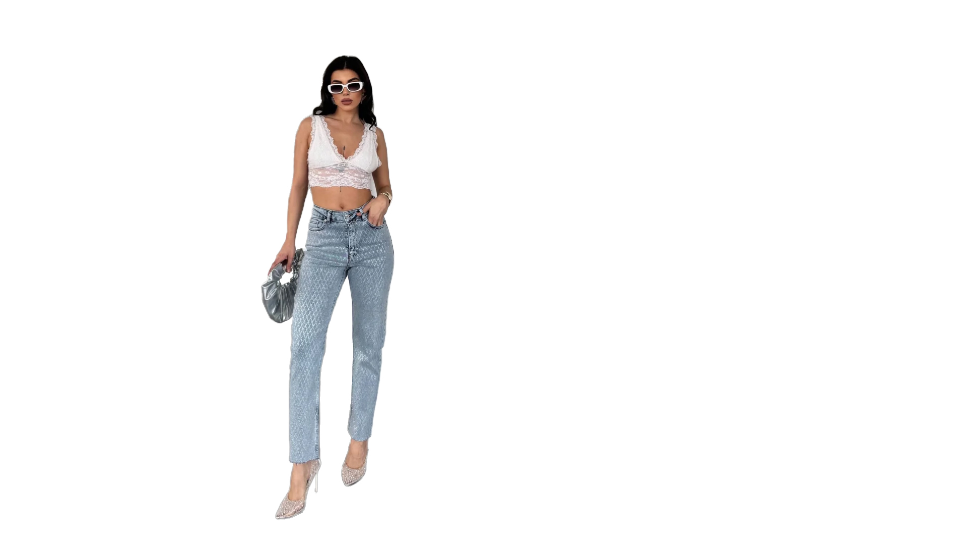 Paçaları Dikişsiz Yüksek Belli Mom Fit Kadın Kot Pantolon Mavi Jean
