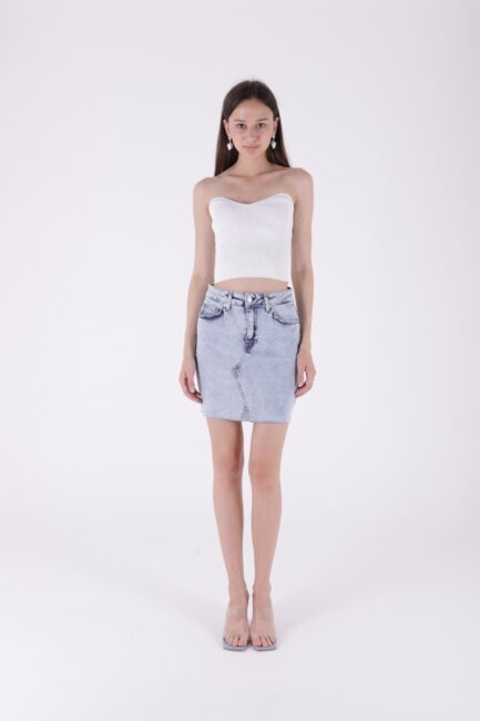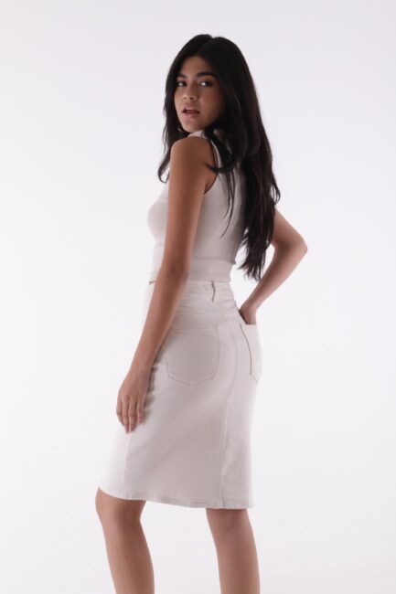 Dar Kalıplı Klasik Tarzlı Cepli ve Normal Belli Kadın Kot Etek Beyaz Denim