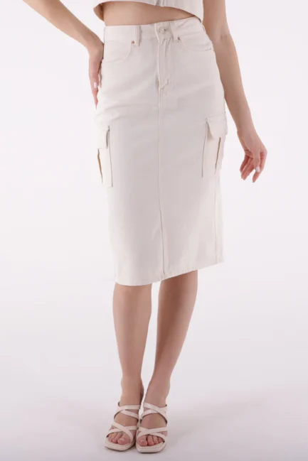 Kargo Cepli Detaylı ve Normal Belli Orta Boy Uzunlukta Kadın Kot Etek Naturel / Doğal Denim