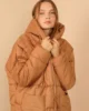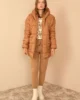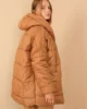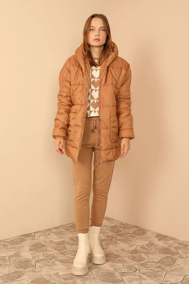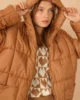- RichMost Astarlı Kapitone Kumaşlı ve Kapüşonlu Uzun Kollu Oversize/Bol Kadın Mont Taba