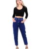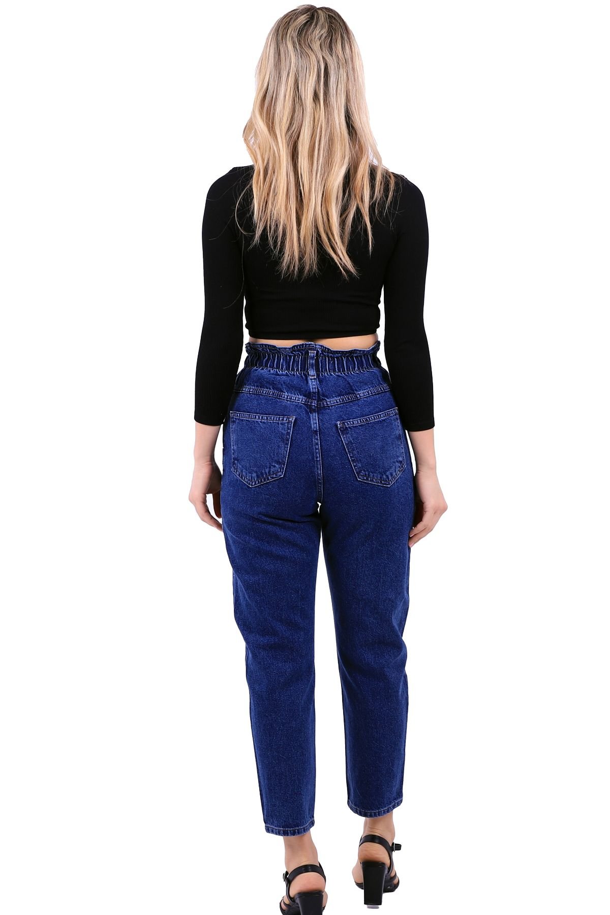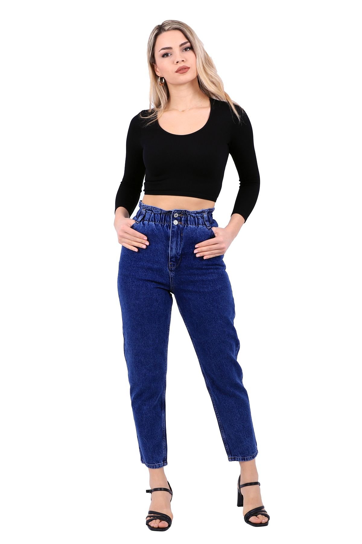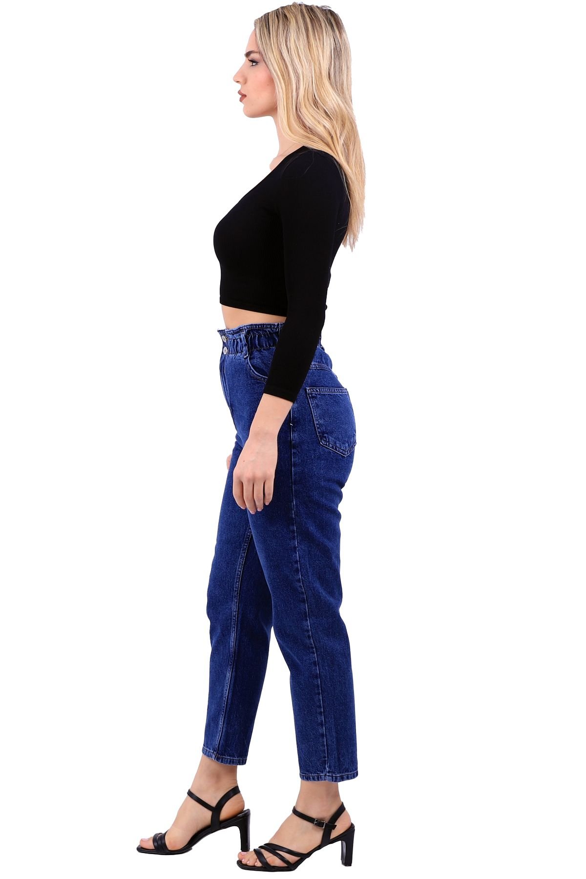 - RichMost Beli Lastikli ve Yüksek Belli Cepli Astarsız Kadın Kot Pantolon Jean Koyu Mavi Denim