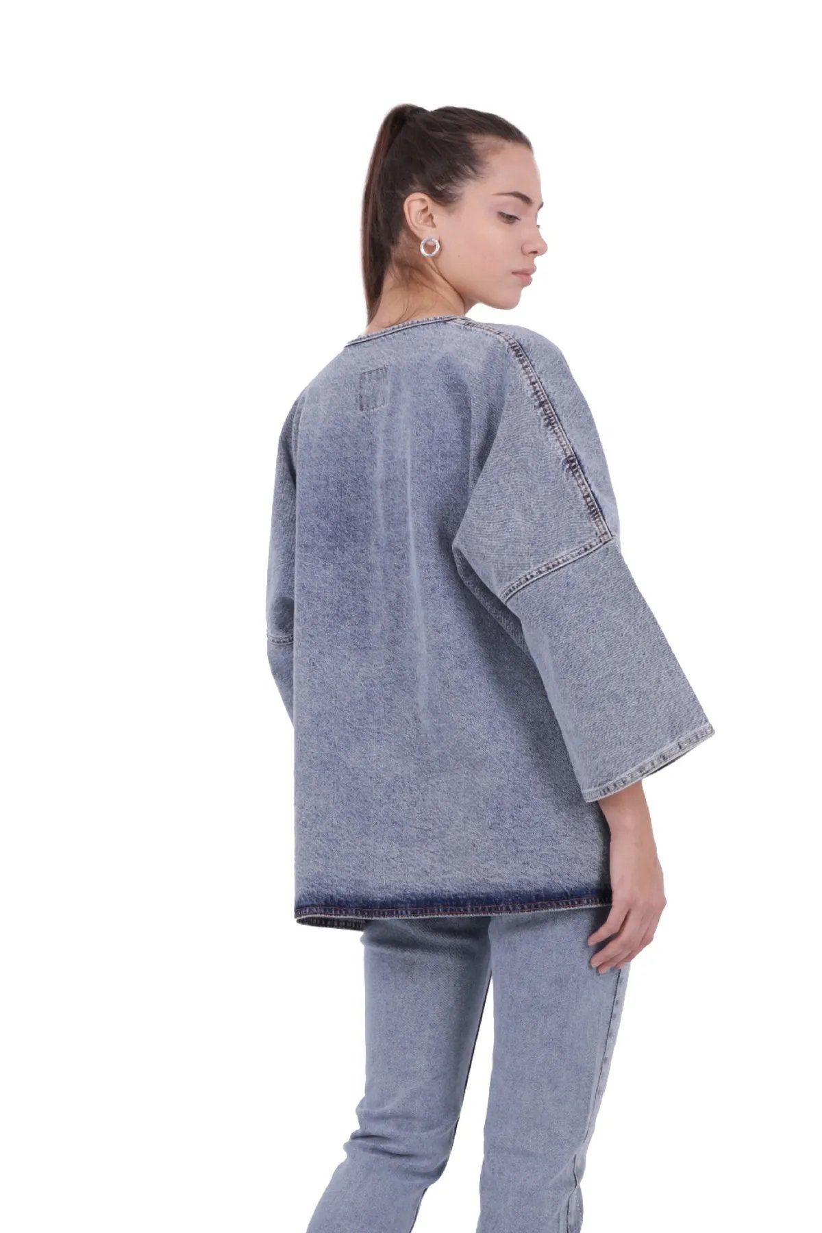 - RICHMOST Bol Kalıplı ve Orta Boylu Kemersiz Rahat / Oversize Kadın Kot Kimono Açık Mavi Denim Dört Mevsim
