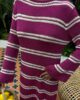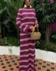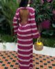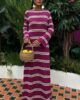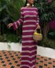 - RICHMOST Çizgili Desenli ve Sırt Dekolteli İspanyol Kollu Bisiklet Yaka Kadın Triko Uzun Elbise Mürdüm- Ekru