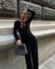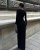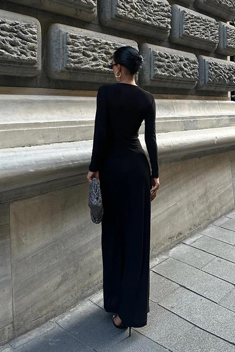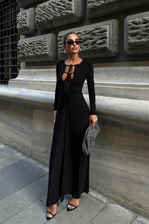 - RICHMOST Dekolte ve Bağlama Detaylı Standart Kalıplı Uzun Kollu Uzun Sandy Kadın Elbise Siyah