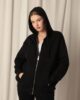 • RICHMOST  Kanguru Cepli ve Fermuar Detaylı Uzun Kollu Kapüşonlu Üç İplik Kumaşlı Kadın Sweat Siyah