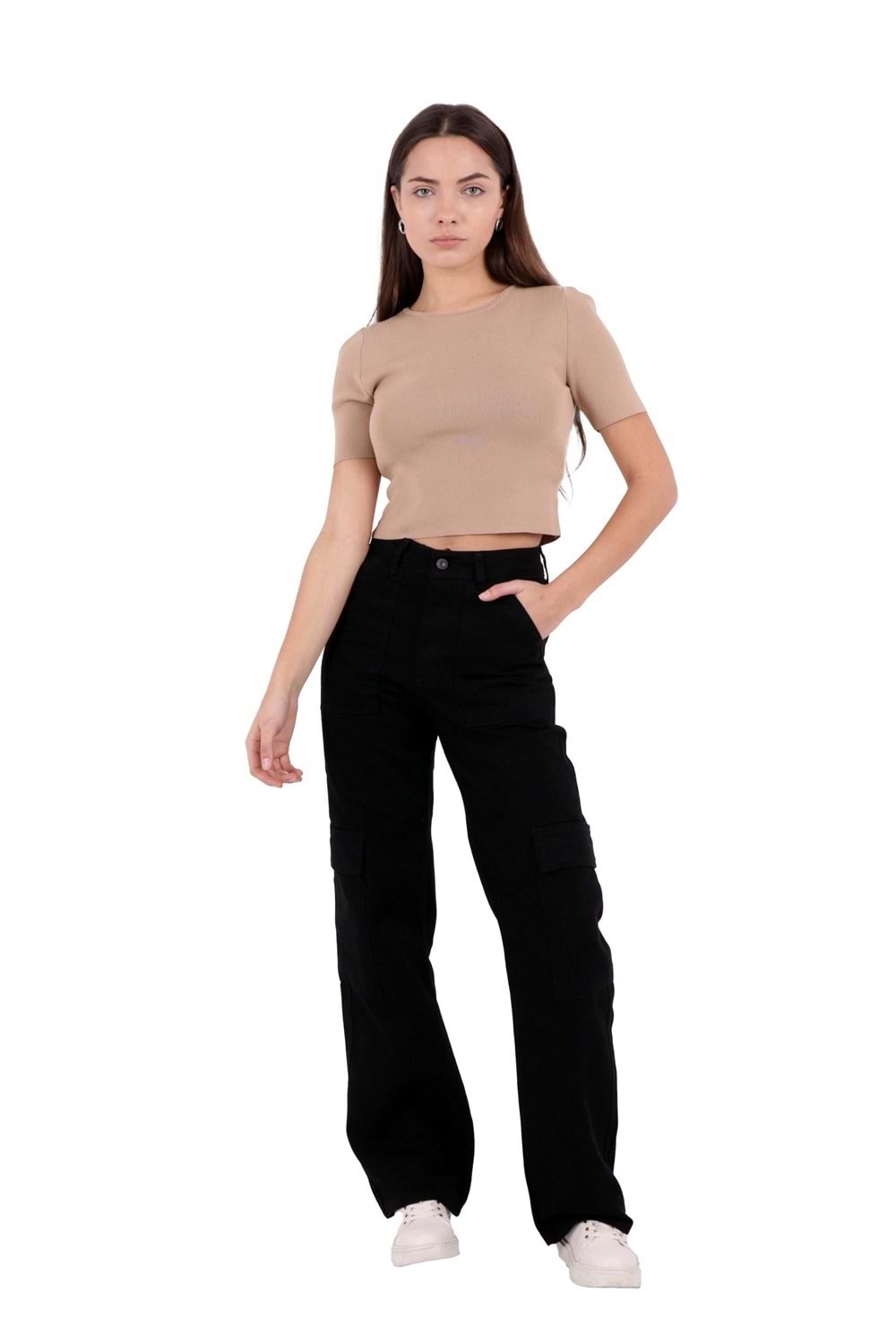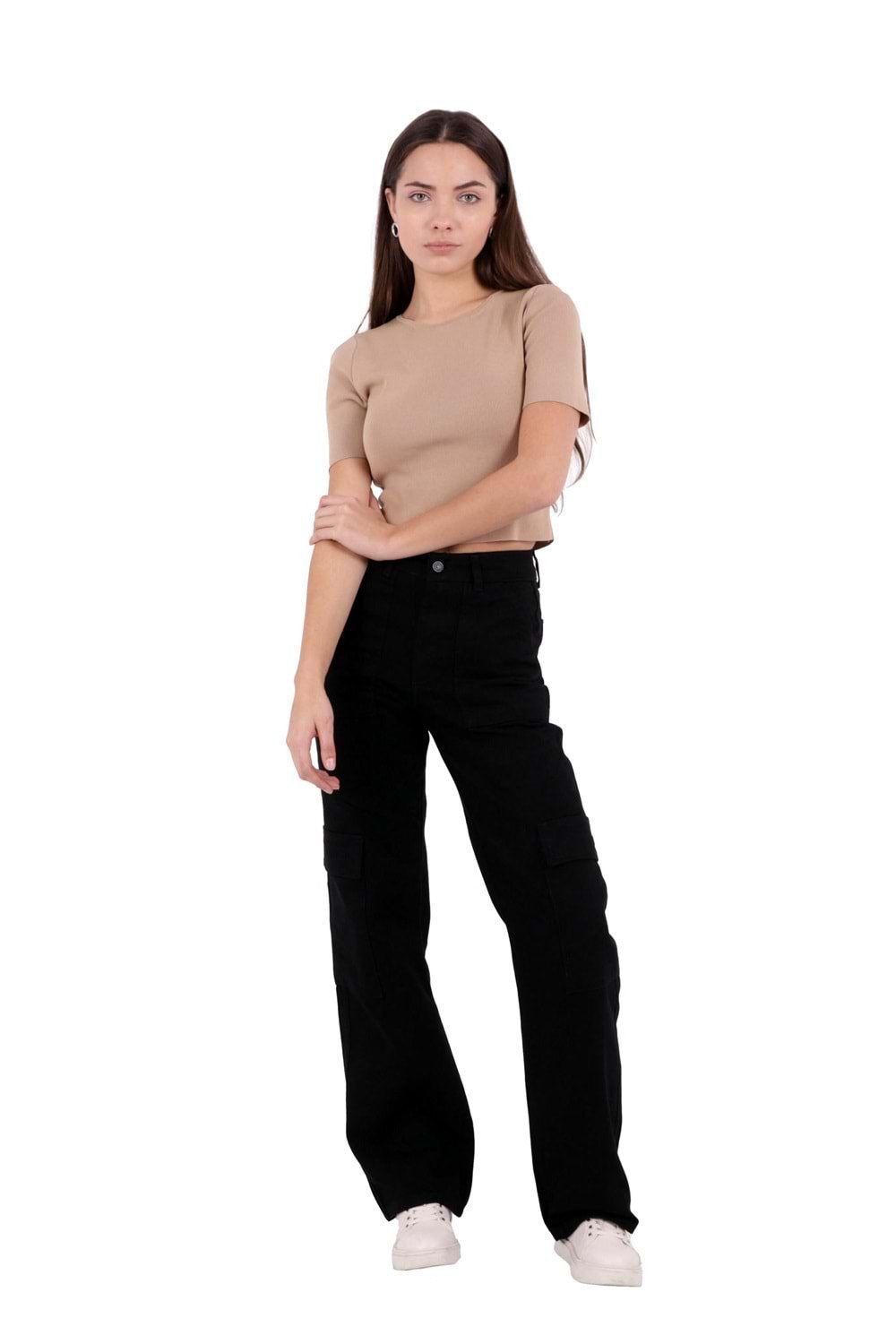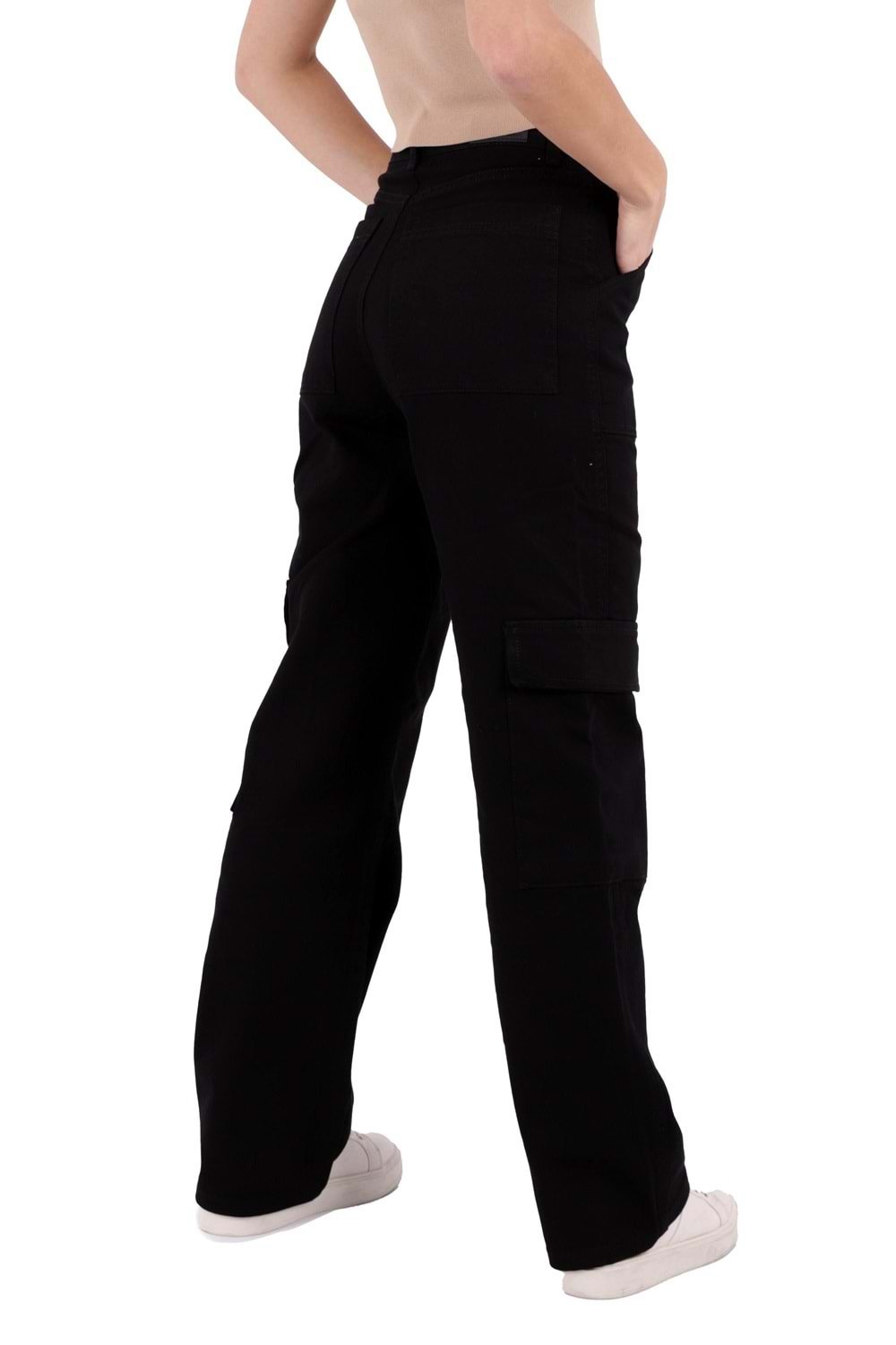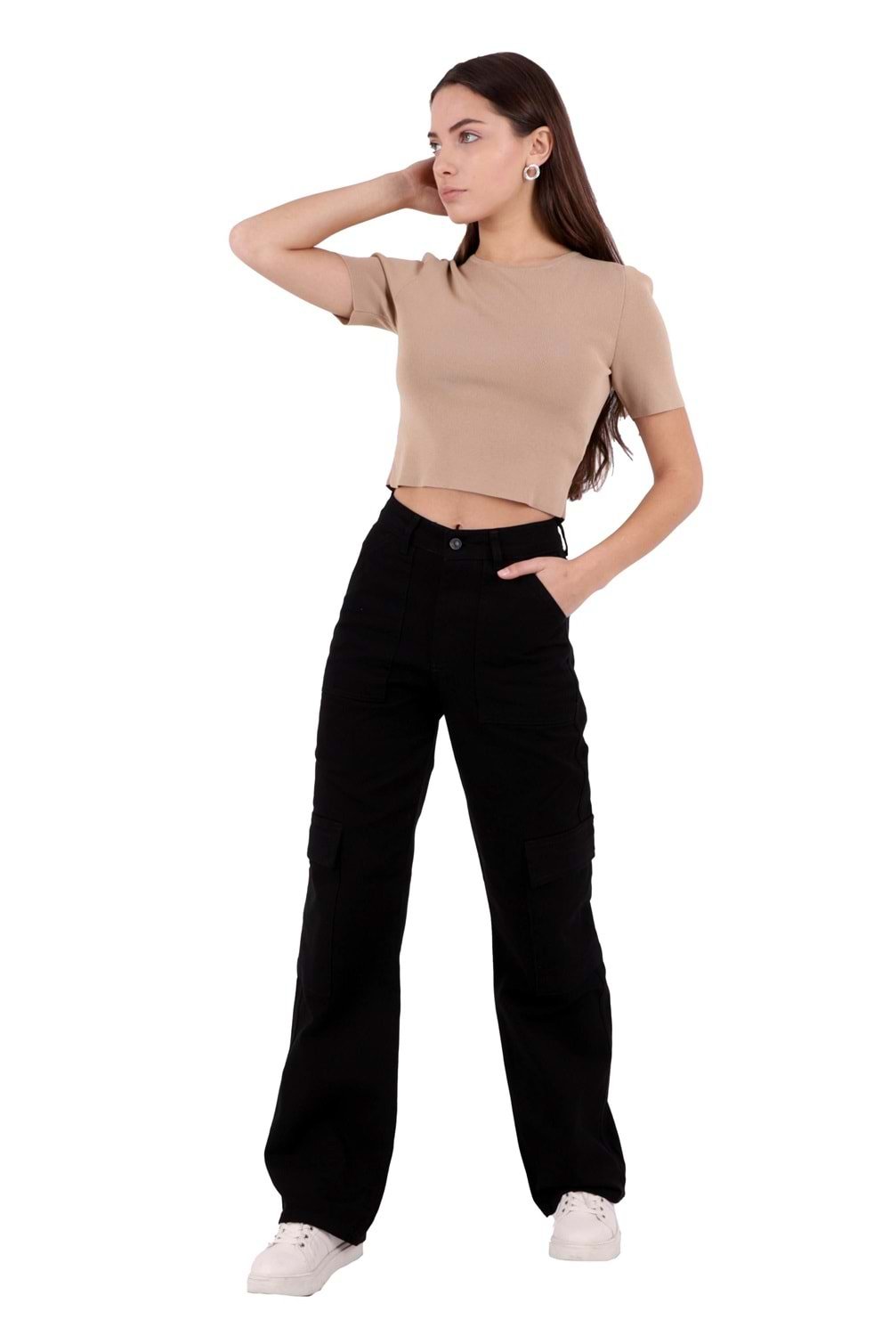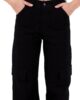 - RichMost Kargo Cepli Detaylı ve Yüksek Belli Tam Boy Hip-Hop Relaxed Kadın Kargo Kot Pantolon Siyah Denim
