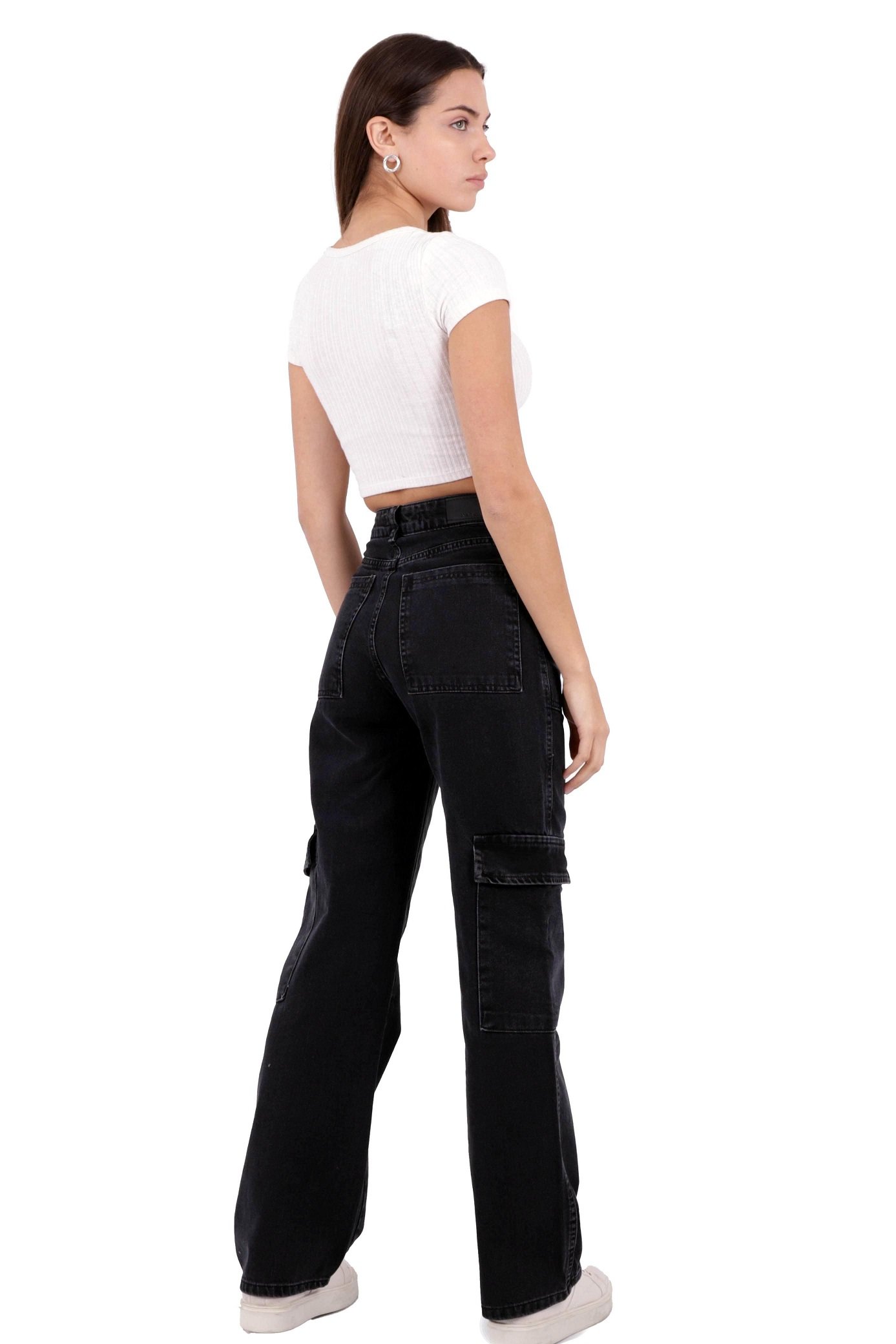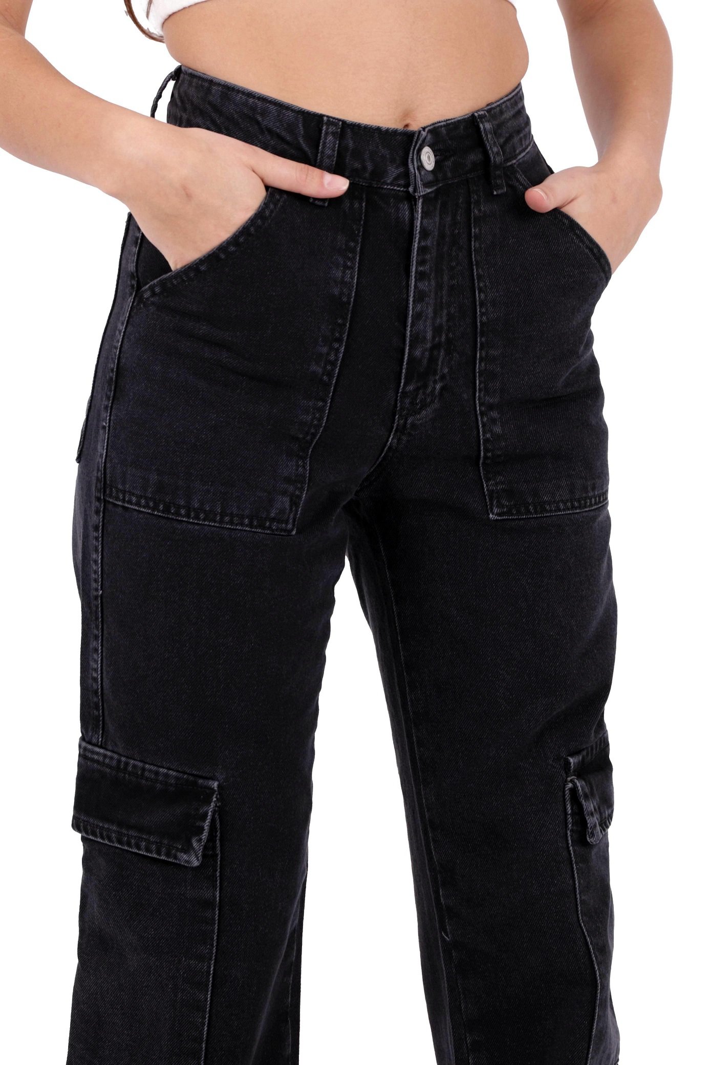 - RichMost Kargo Cepli Geniş Paçalı Yüksek Belli Hip-Hop Kadın Kot Pantolon Dört Mevsim Normal Antrasit