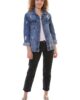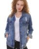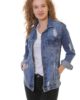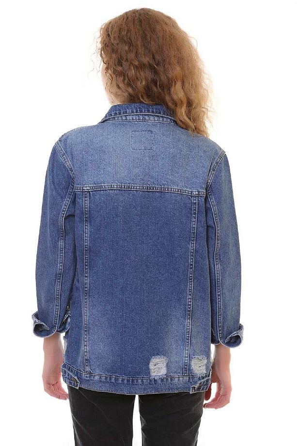 Lazer Yırtıklı ve Klasik Yakalı Uzun Kollu Cepli Klasik Kadın Kot Ceket Koyu Mavi Denim Dört Mevsim