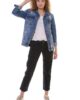 • RichMost   Lazer Yırtıklı ve Klasik Yakalı Uzun Kollu Cepli Klasik Kadın Kot Ceket Koyu Mavi Denim Dört Mevsim