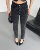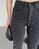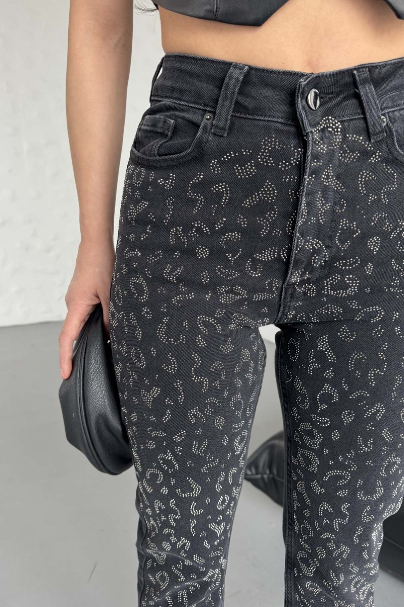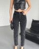 - RICHMOST Leopar Taşlı ve Yüksek Belli Dikişsiz Paçalı Bilek Boy Mom Fit Kadın Kot Pantolon Düz Antrasit Jean