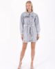 - RICHMOST Önü Dekoratif Cepli ve Kuşaklı Balon Kol Düğmeli Kadın Kısa Kot Elbise KarYıkama Açık Mavi YazBahar