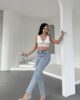 - RICHMOST Önü Dekoratif Taş Detaylı Yüksek Belli Mom Fit Kadın Kot Pantolon Kar Yıkama Açık Mavi Jean