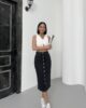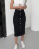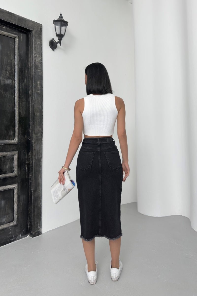 • RichMost  Önü Düğmeli ve Bitişi Püsküllü Cepli Kısa Boylu Kot Kadın Etek Normal Antrasit Denim Yaz / Bahar