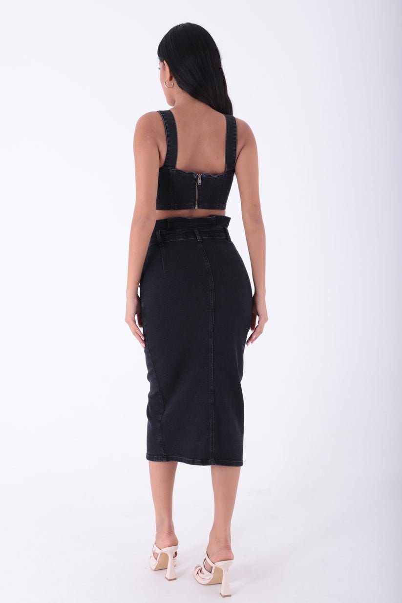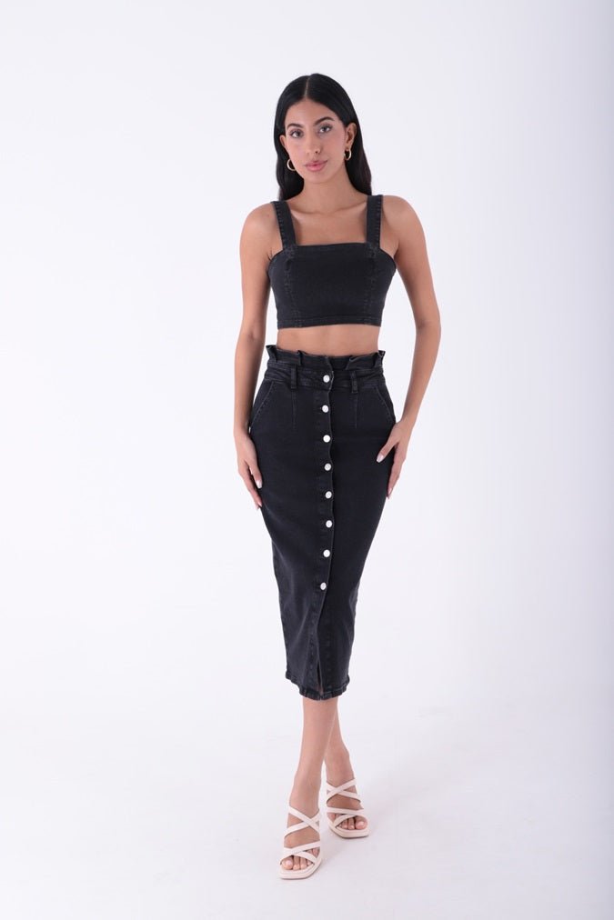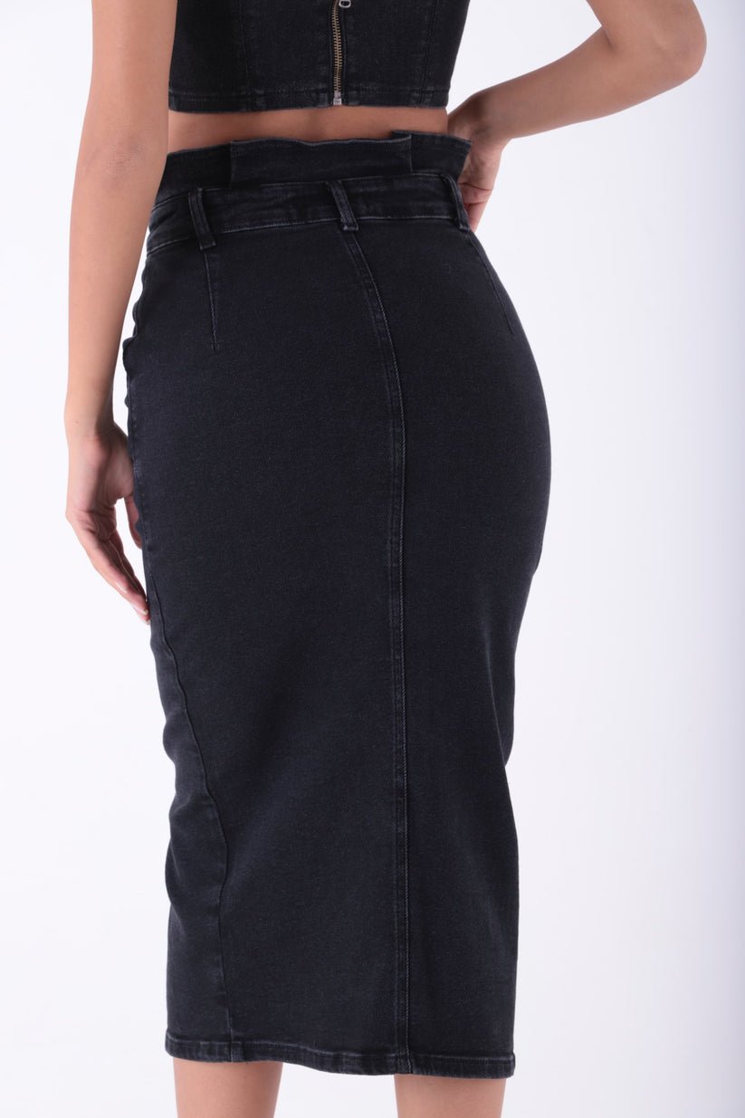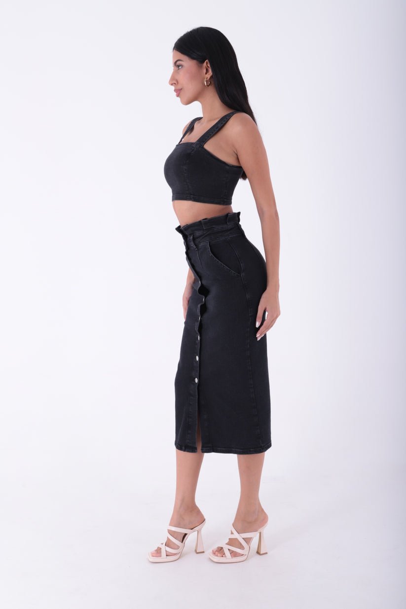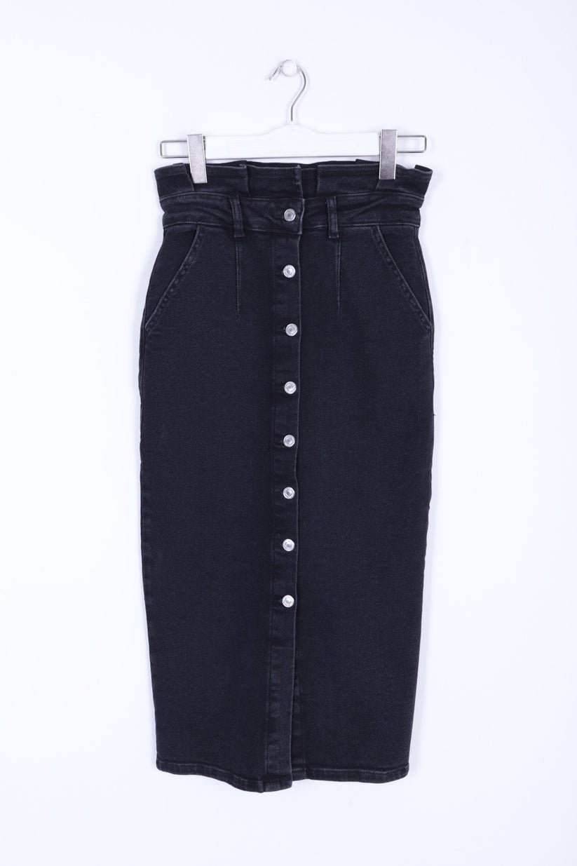 - RichMost Önü Düğmeli ve Pileli Cepli Astarsız Kadın Midi Kot Etek Normal Antrasit Denim Dört Mevsim