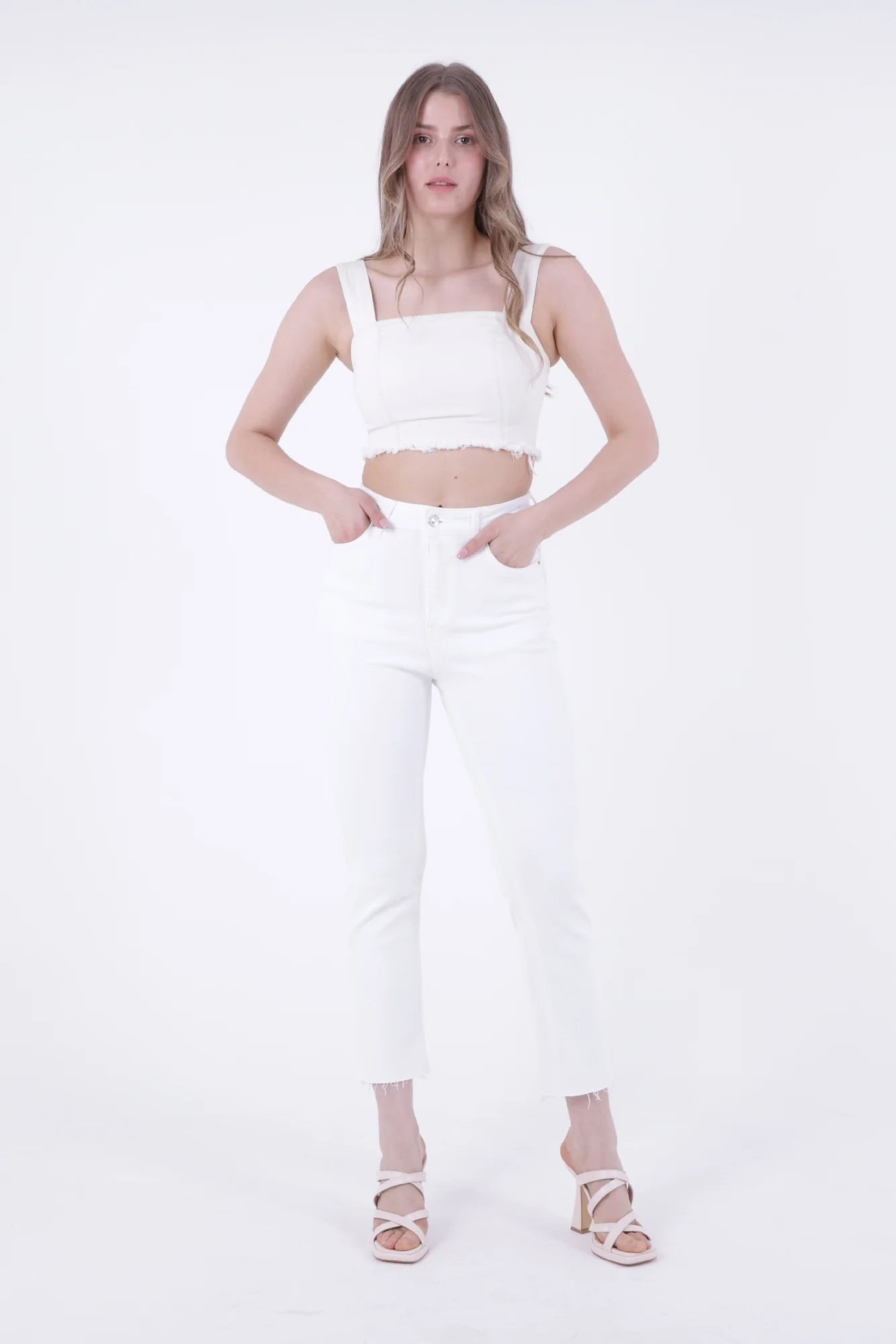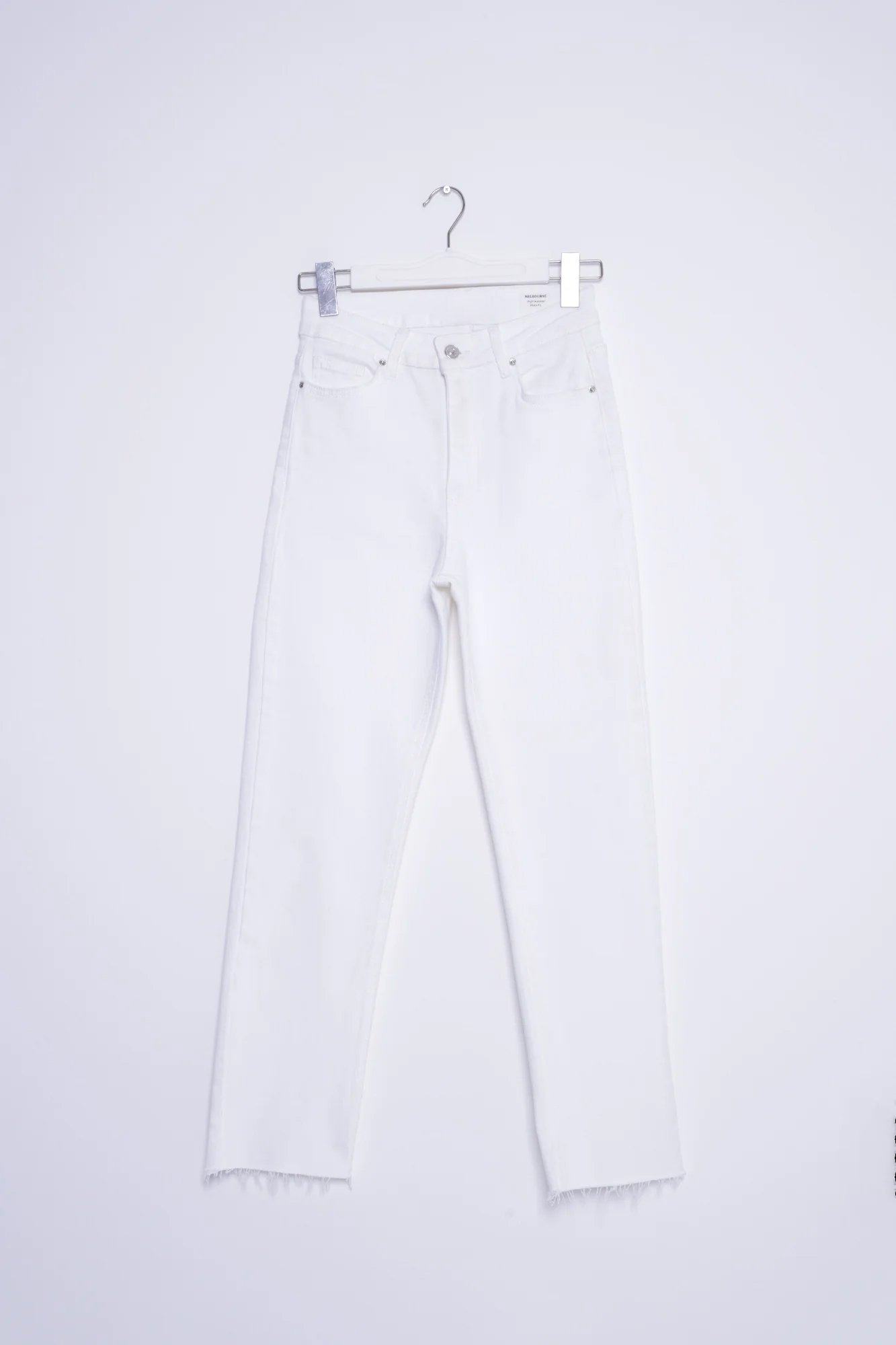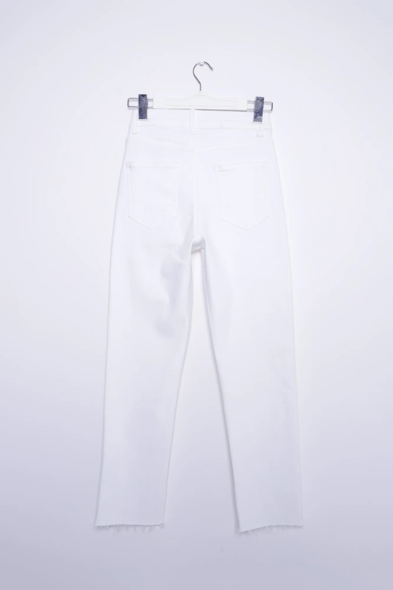 - RichMost Paçaları Dikişsiz ve Yüksek Belli Cepli Astarsız Kadın Kot Pantolon Mom Fit Jean Beyaz Denim