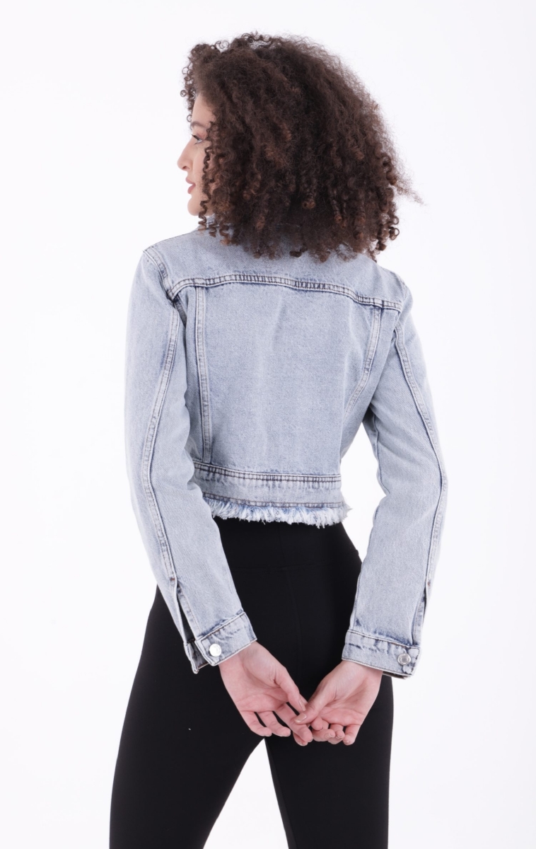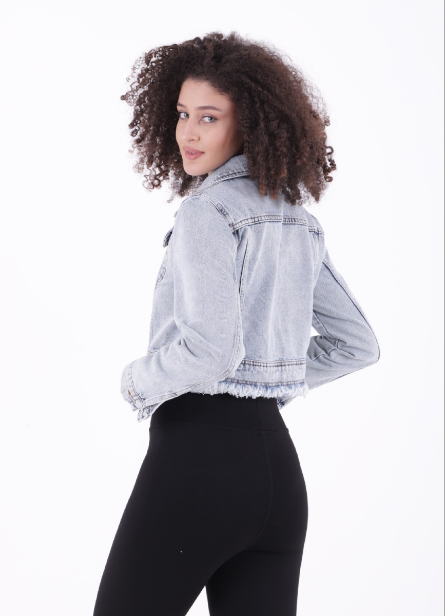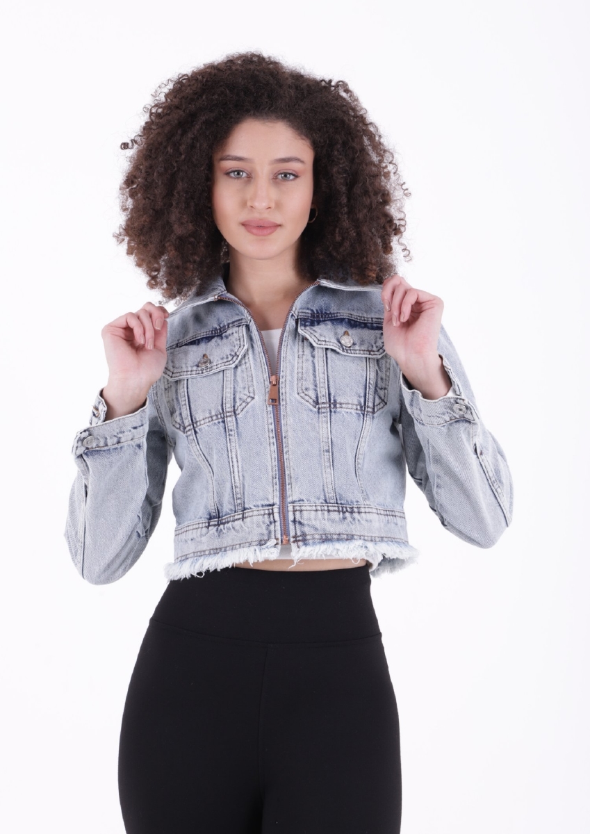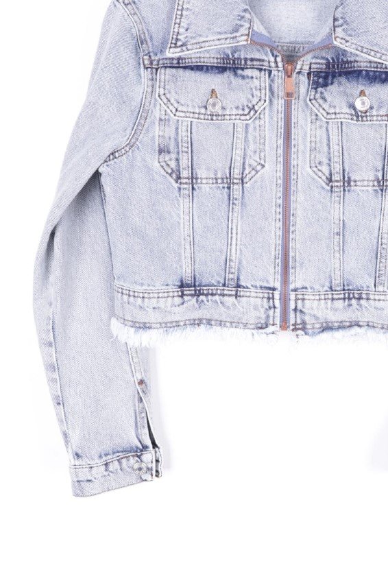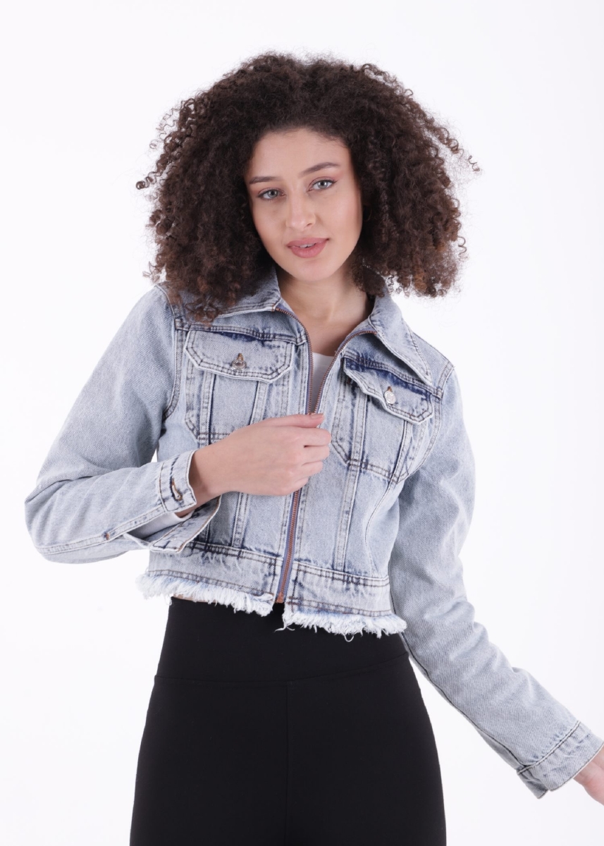 - RICHMOST Püskül Detaylı ve Fermuarlı Kolları Düğmeli Kısa Kot Kadın Ceket Kar Yıkama Açık Mavi Denim