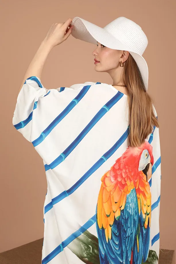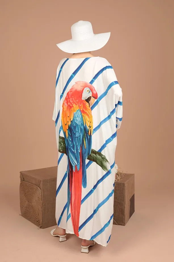 “Sırtı Papağan Desenli V Yakalı Viskon Kumaşlı Geniş Kollu Salaş Kadın Elbise Saks Yaz / Bahar” için yorum yapan ilk kişi siz olun