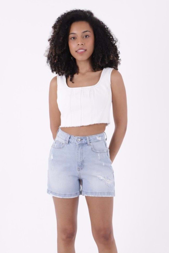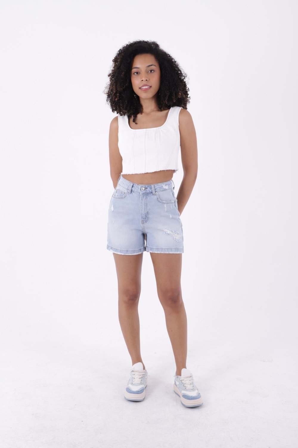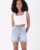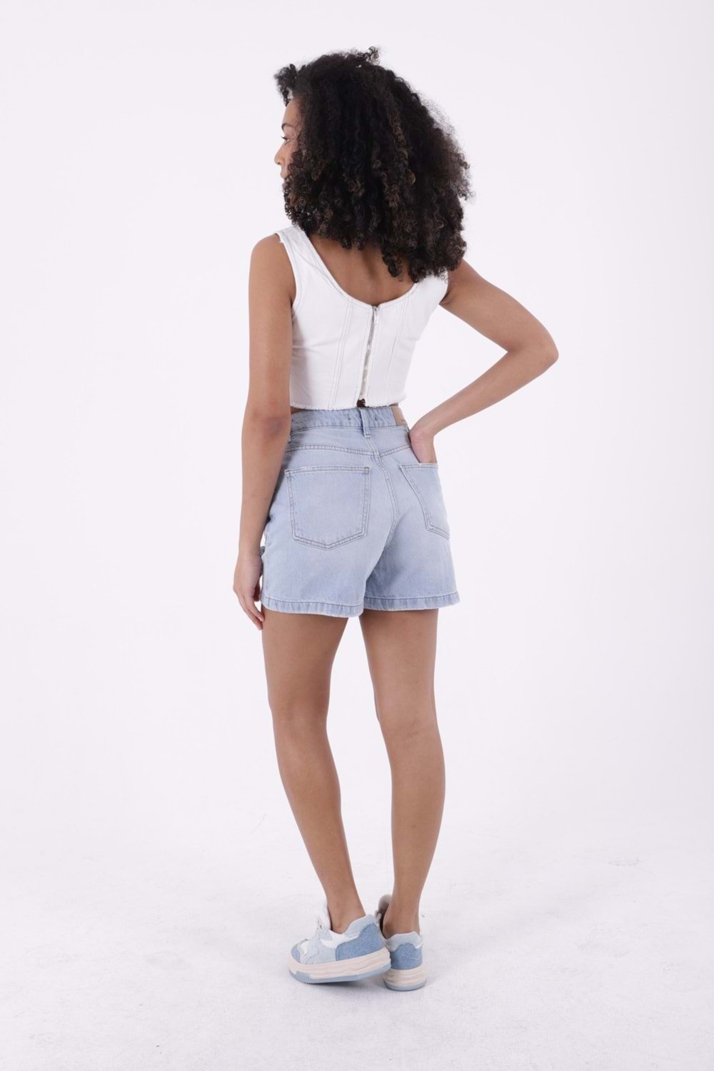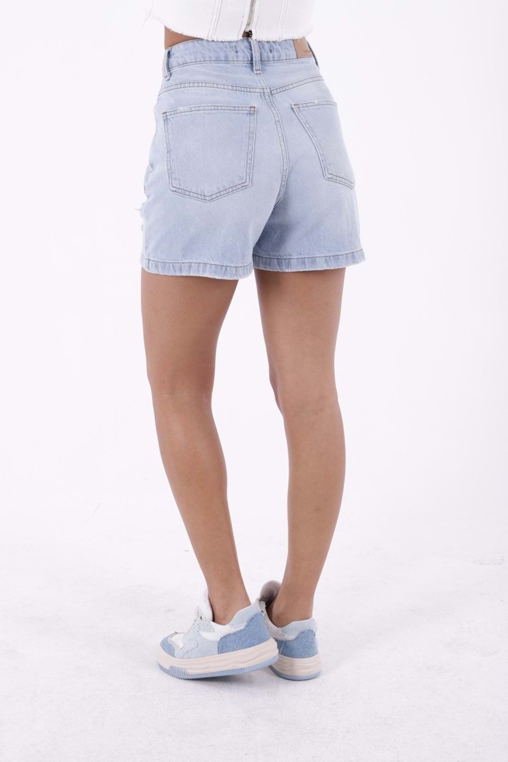 - RICHMOST Yıpratma Detaylı Cepli ve Astarsız Kısa Boy Yüksek Belli Mom Fit Kadın Şort Buz Mavi Yaz / Bahar